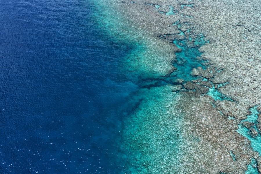 An aerial drone photo taken on Oct. 2, 2025 shows a view of China's Huangyan Dao national nature reserve in the South China Sea. (Xinhua)