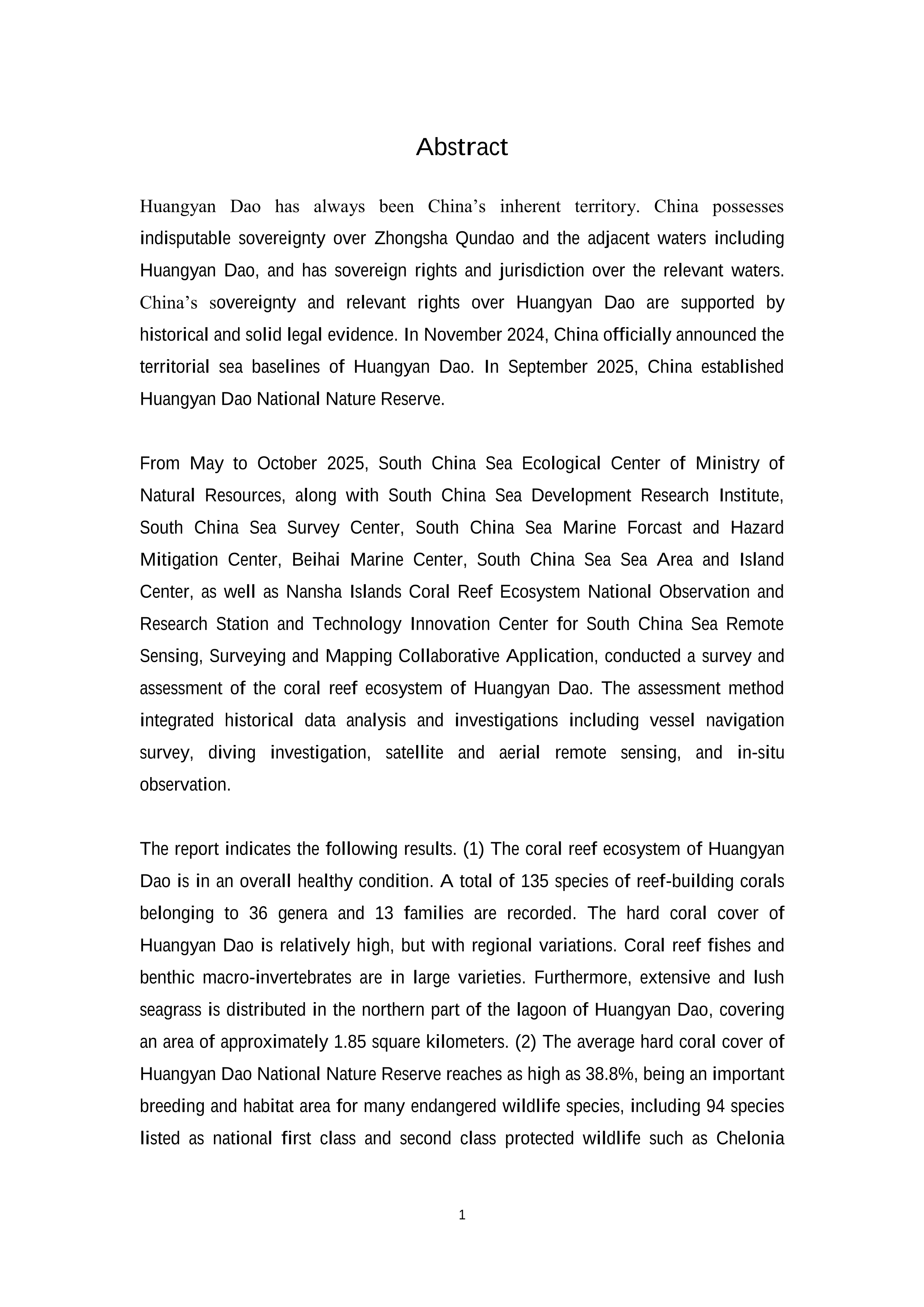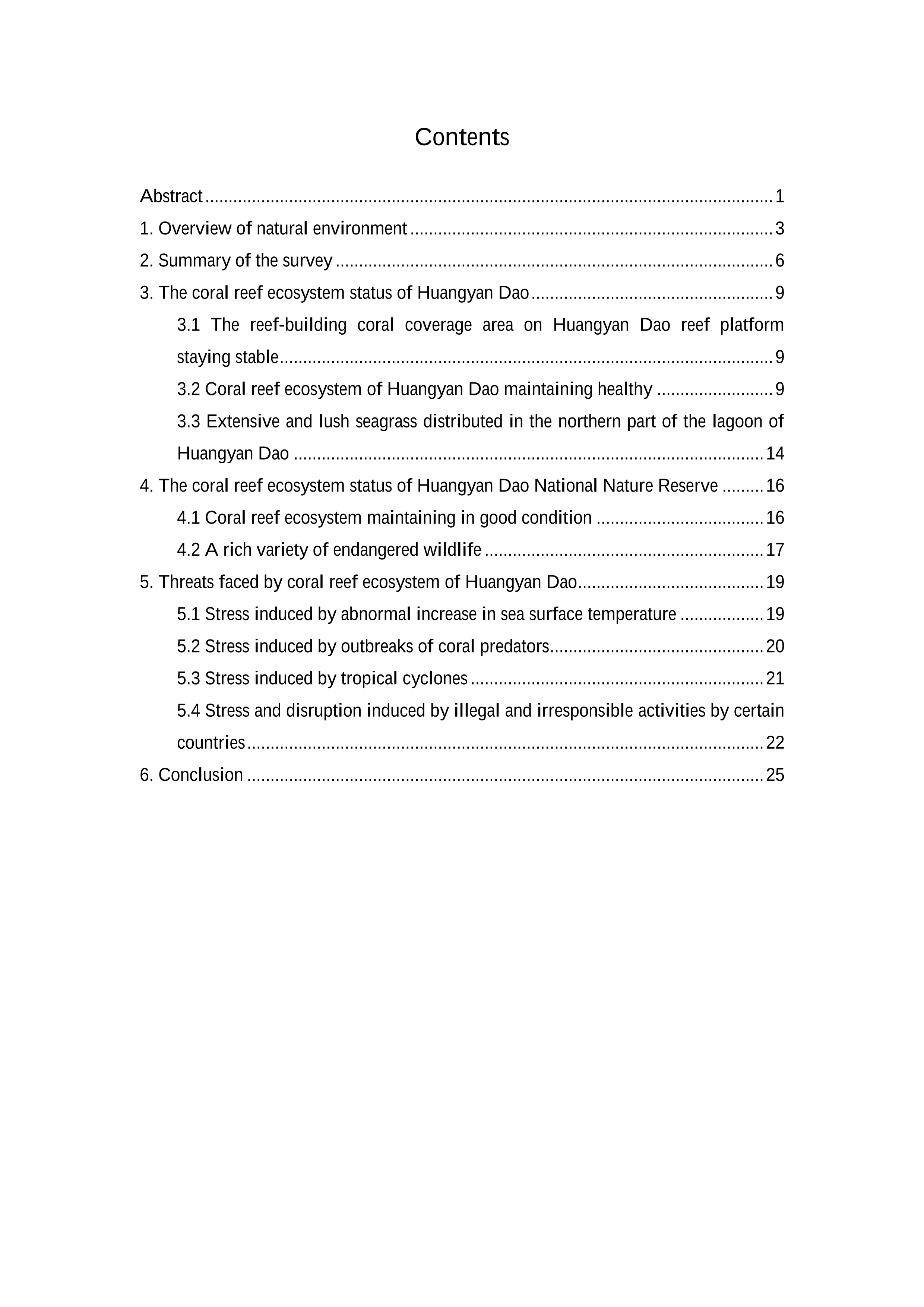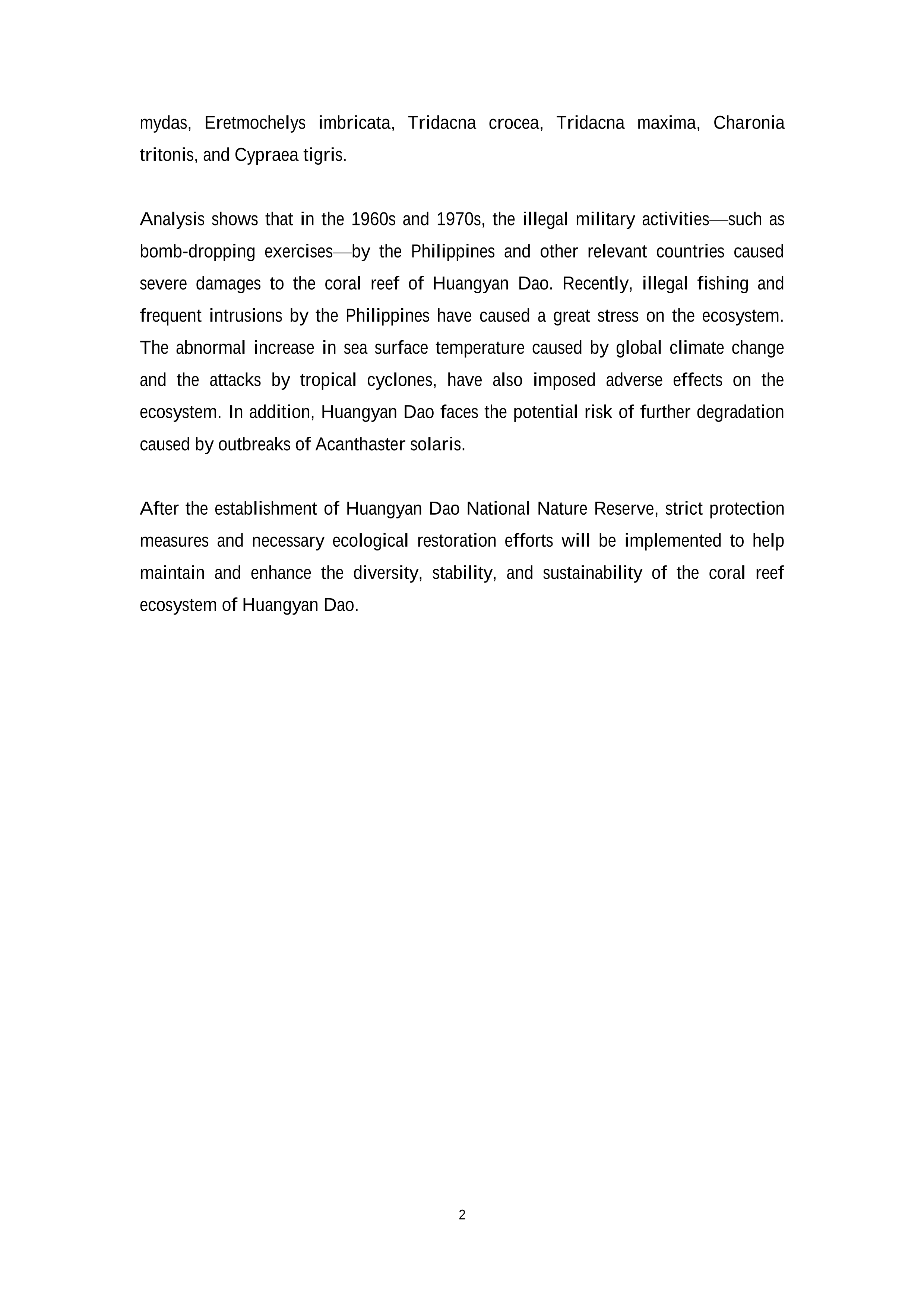 MNR:A Survey Report on the Coral Reef Ecology of Huangyan Dao