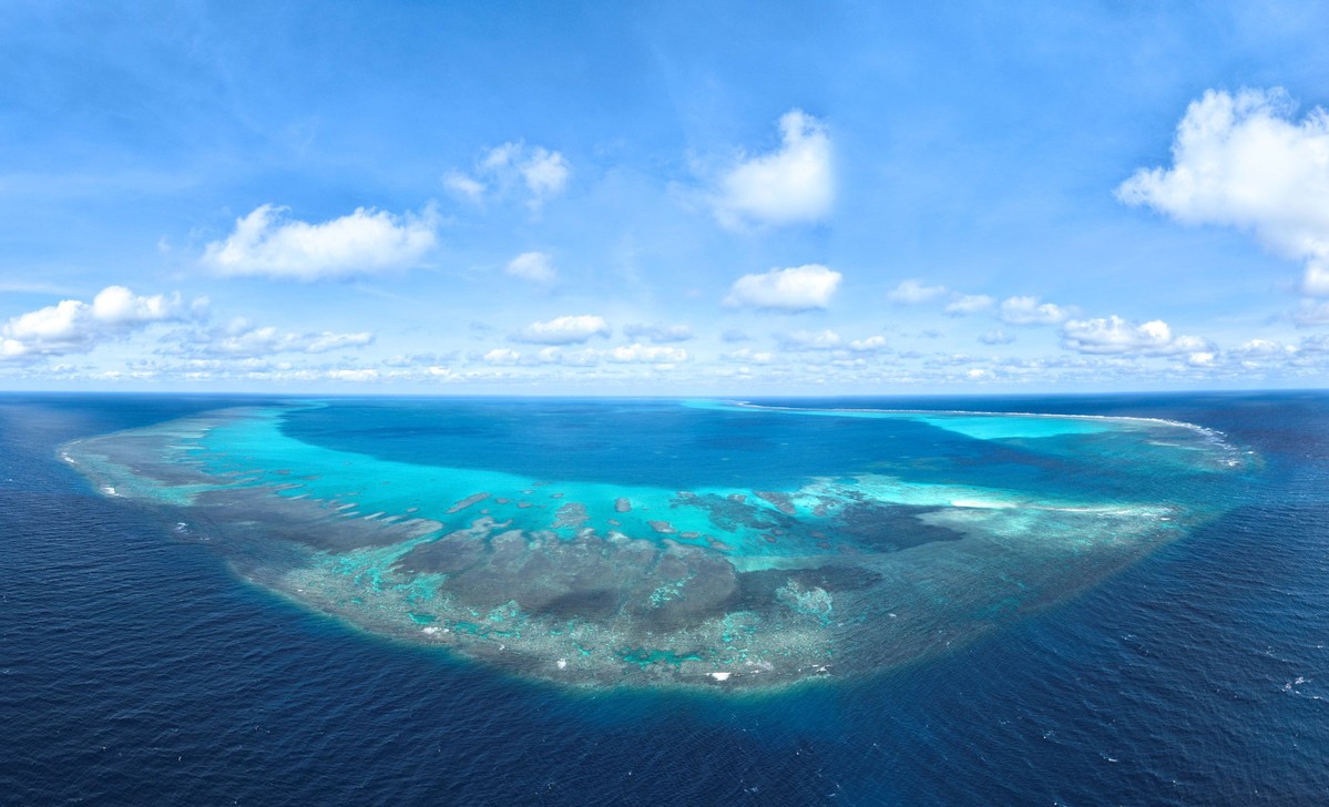 An aerial drone photo taken on Nov 14, 2025 shows a panoramic view of China's Huangyan Island in the South China Sea. [Photo/Xinhua]